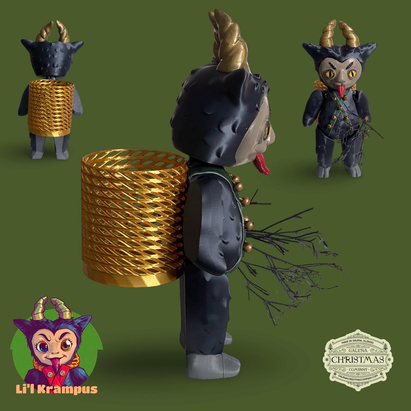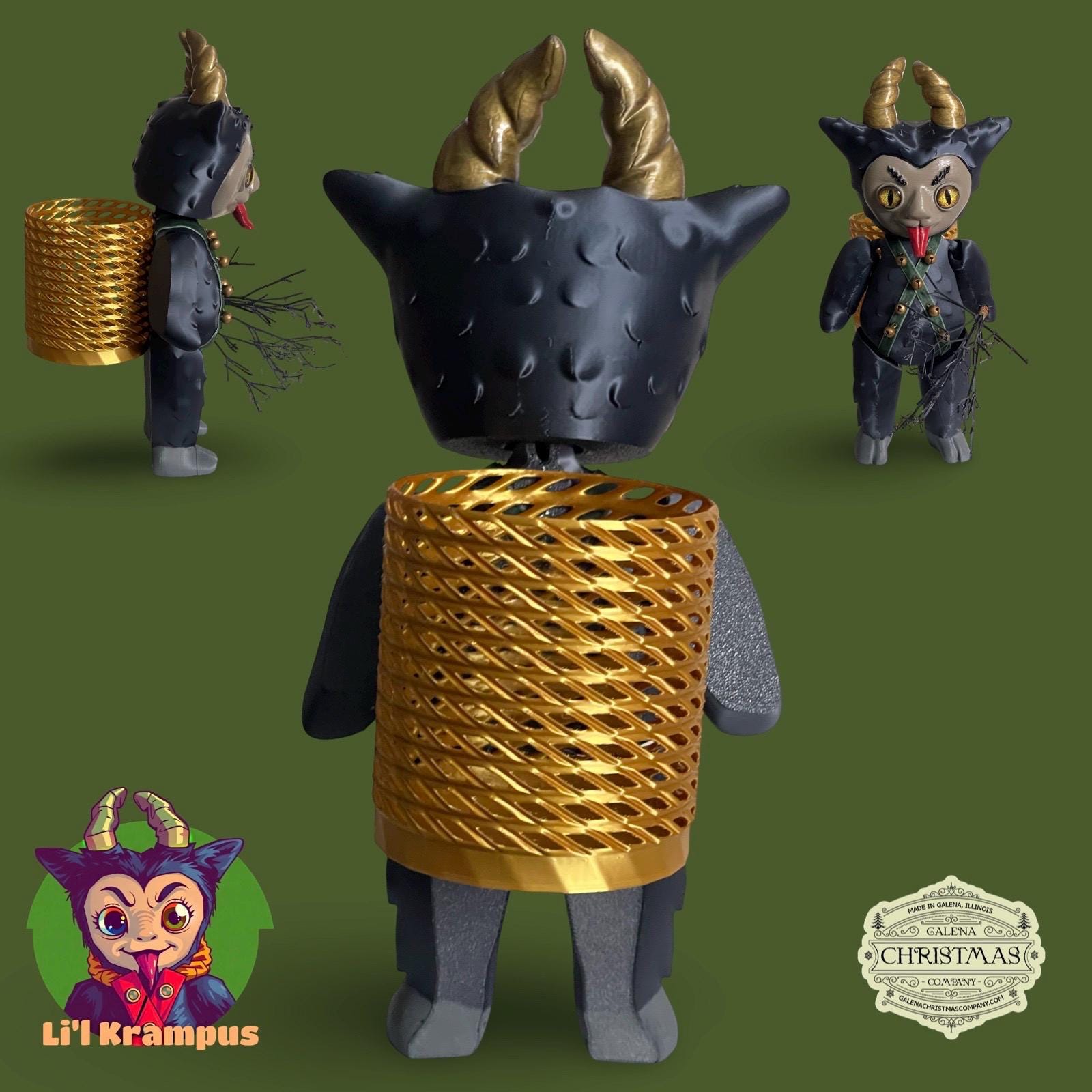 With gleaming gold horns, a sinister little smirk, and a basket that’s definitely not for fruit, Lil’ Krampus isn’t here to make sure you behave—he’s here to keep things “interesting”. And let’s just say, he’s got strong feelings about holiday “helpers” who snitch.